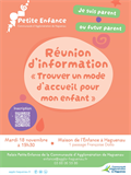 Réunion d'information : Trouver un mode d'accueil pour mon enfant. Mardi 18 novembre 2025 à 19h30....