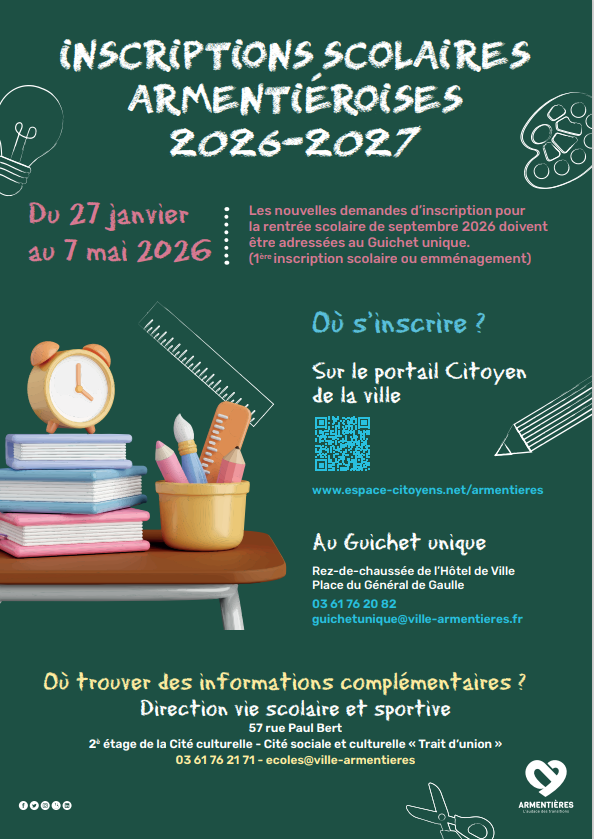 INSCRIPTIONS SCOLAIRES 2026-2027Campagne du mardi 27 janvier 2026 au jeudi 7 mai 2026. A partir du...
