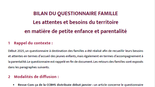 Cliquez sur lire la suite pour consulter le bilan du questionnaire famille en matière de petite enfance et parentalité.