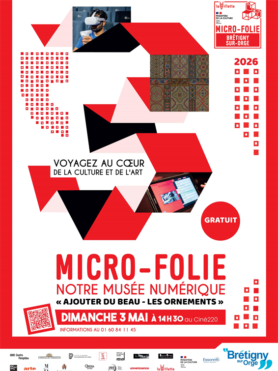 Micro-Folie - 3 mai 2026 le 3 Mai de 14h30 à 16h00 Micro-Folie, notre Musée Numérique « Ajouter du beau – Les Ornements » > CONFÉRENCE animée par Aurore AmourouxEn référence à l’exposition «Tisser, broder, sublimer : les savoir-faire de la mode» au... Lire la suite