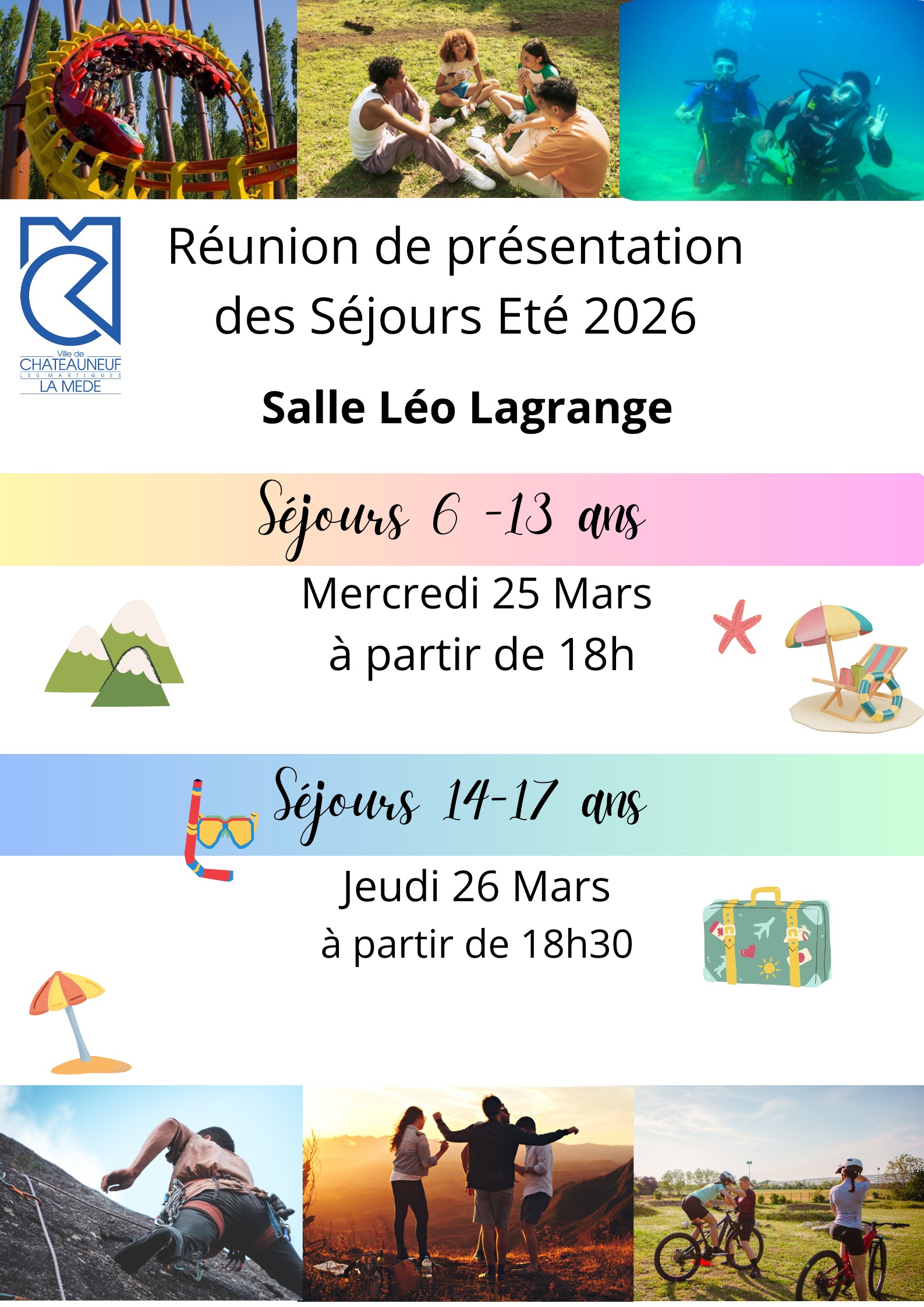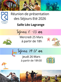 Venez participer aux réunions d'informations pour les séjours d'été 2026 Les Pré-inscriptions aux...