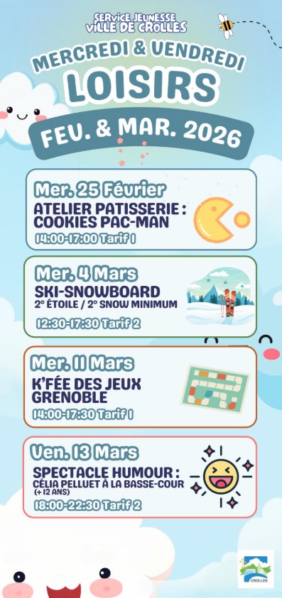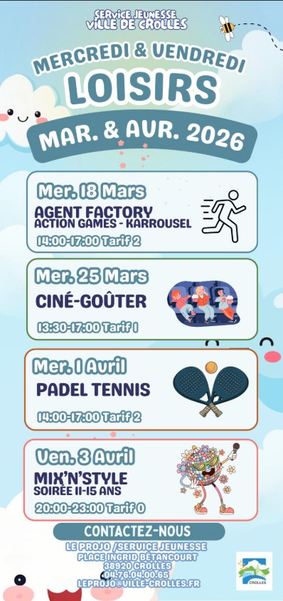 Voici les activités Jeunesse des mercredis et vendredis des mois de février, mars et avril 2026