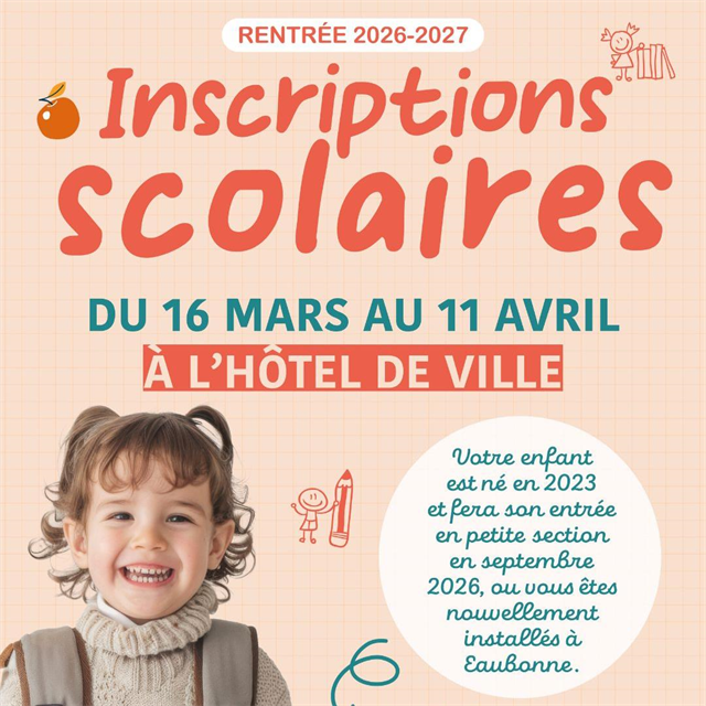 Les inscriptions pour la rentrée de septembre 2026 se dérouleront du 16 mars au 11 avril.Elles...