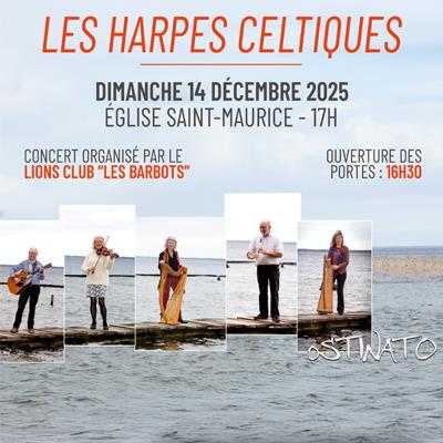 Concert Les Harpes Celtiques le 14 Décembre de 17h00 à 18h00 Par Ostinato. Organisé par l’association le Lions Club Les Barbots au profit des chiens guides d’aveugles. Lire la suite