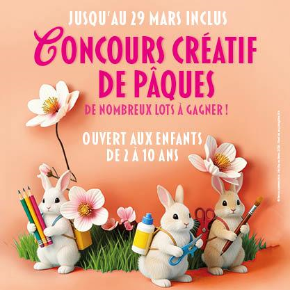 Jeu-concours créatif de Pâques Avis aux petits artistes ! Les enfants ont carte blanche pour imaginer et créer leur œuvre sur le thème de Pâques. Comment participer ?Jusqu’au 29 mars, les enfants de 2 à 10 ans peuvent déposer leur... Lire la suite