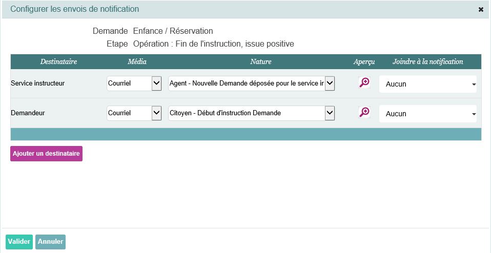 Une même nature de notification peut servir à plusieurs demandes comme