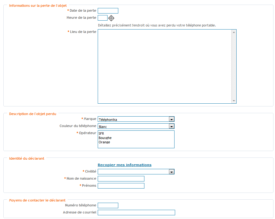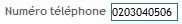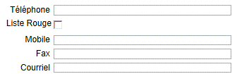 Téléphone : Paramétrage : - obligatoire ou non. Affichage d'un champ de saisie d'un numéro de téléphone. |