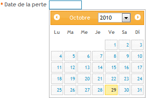 Saisie d'une date au format jj/mm/aaaa ou sélection dans le calendrier. |