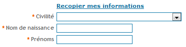 Identité : Paramétrage : - obligatoire ou non. Affichage d'un ensemble de champs de saisie. |