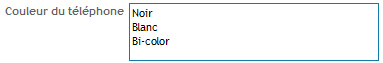 Liste : Paramétrage : - texte d'aide, - obligatoire ou non, - possibilité d'indiquer si la multisélection est autorisée, - valeurs fournies par un système externe si la case correspondante est cochée, sinon : - saisie des différentes valeurs de la liste |