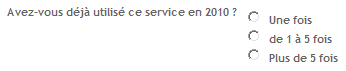 Liste de boutons radio : Paramétrage : - texte d'aide, - obligatoire ou non, - valeurs fournies par un système externe si la case correspondante est cochée, sinon : - saisie des différentes valeurs de la liste Une seule sélection possible. |