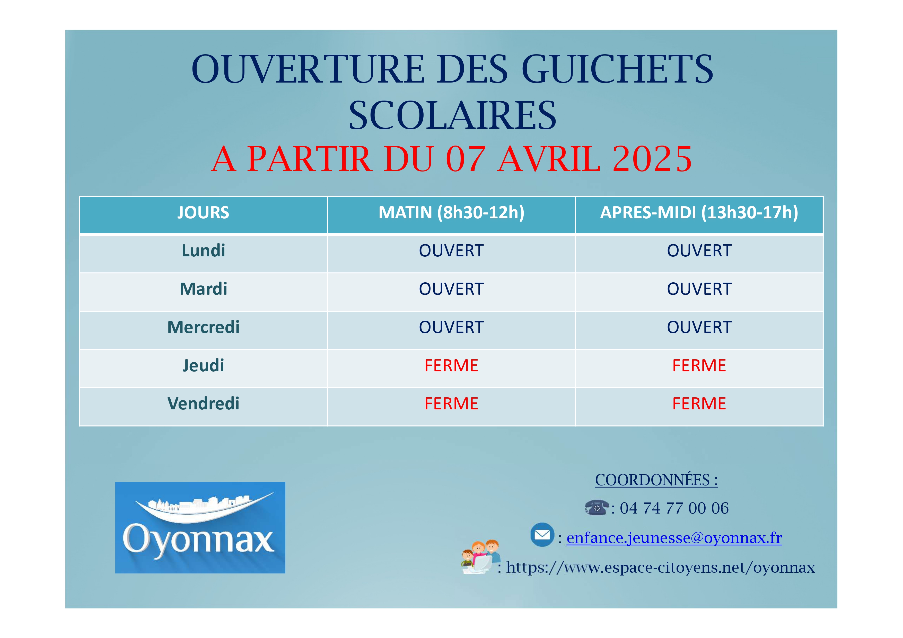 Horaires d'ouverture des guichets