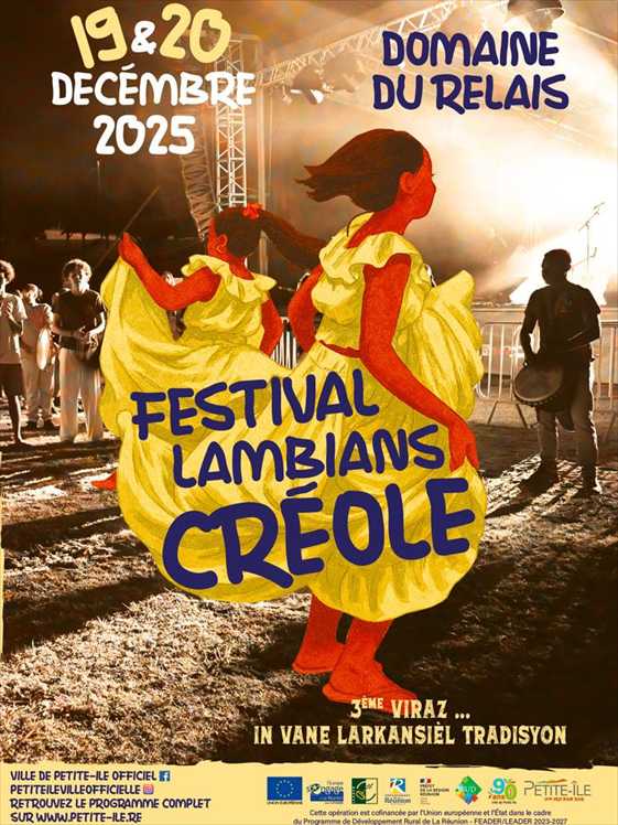 Le Domaine du Relais à Petite-Île accueille le festival lambians créole les 19 et 20 décembre. A l’affiche, Davy Sicard, Ousanousava, Kaf Malbar, Missty et bien d’autres encore. Le samedi 20, venez découvrir le village patrimonial avec des expositions, dégustations et ventes de produits péï à partir de 10h. Alon rant dann in mémwar lo rytm ek tradisyon ! Tout le programme sur www.petite-ile.re