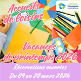 Réservations pour les Vacances de Printemps 2026 Vacances de printemps 2026 : du 20 au 30 avril 2026 Les réservations pour les vacances de printemps 2026 sont ouvertes du 9 au 20 mars 2026 inclus. Modalités d'inscription Afin de garantir une... Lire la suite