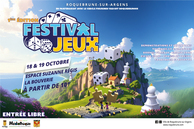 Festival des Jeux du 17 au 19 Octobre "Découvrez, jouez, amusez-vous !"Les 18 et 19 octobre 2025, la Ville de Roquebrune-sur-Argens lance la 1ʳᵉ édition de son Festival des Jeux, au complexe sportif Jacques Calandri (quartier de La... Lire la suite