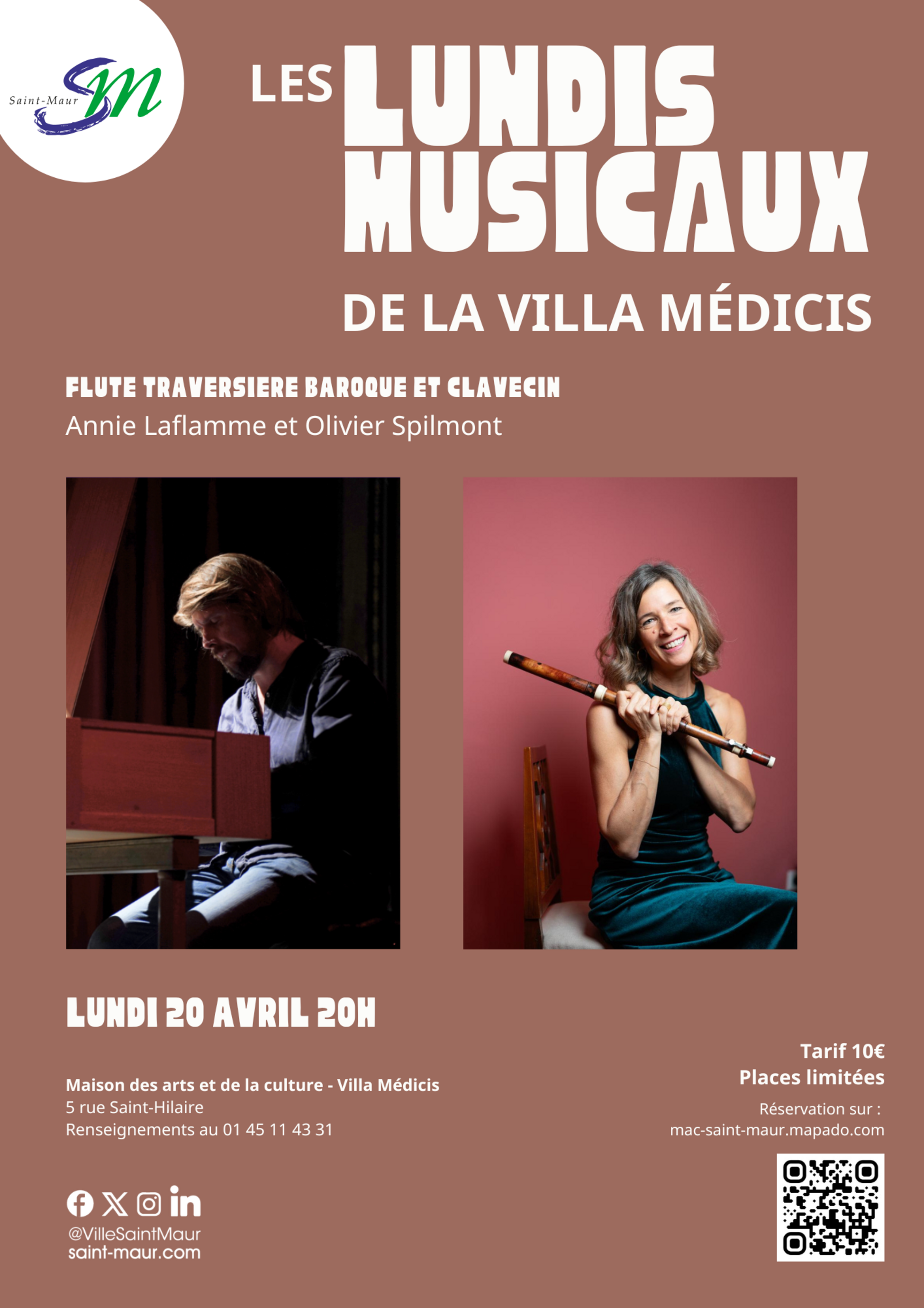 Les Lundis Musicaux de la Villa Médicis le 20 Avril La Maison des Arts et de la Culture - Villa Médicis accueille Olivier Spilmont, au clavecin, et Annie Laflamme, à la flûte traversière, pour une soirée musicale placée sous le signe de l’élégance et... Lire la suite