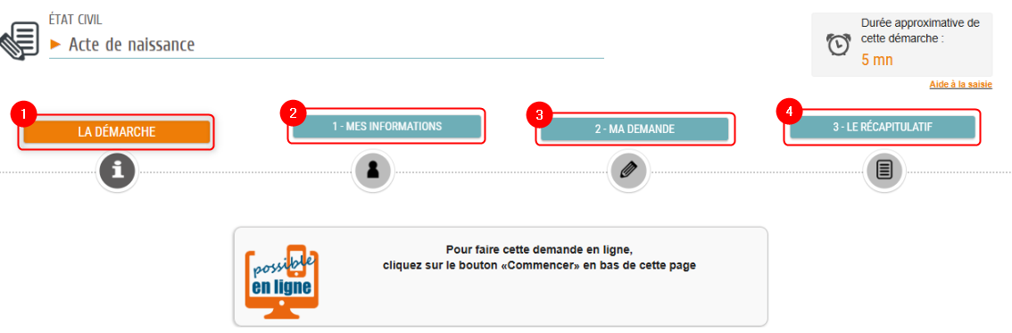 - > Si la démarche est disponible en ligne , cette icône apparaît en haut de la page