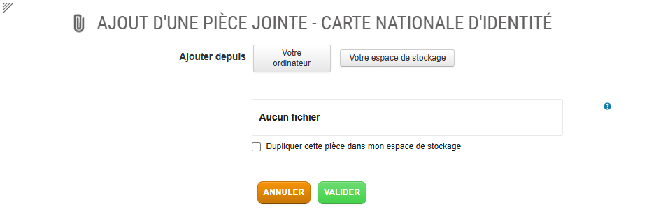 - NB : Si la pièce a plusieurs fichiers (une carte d’identité recto et verso, par exemple), cliquer de nouveau sur « Ajouter un fichier » pour sélectionner le deuxième élément.