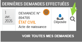 - > Une demande peut être consultée à tout moment à partir du Tableau de bord de votre espace personnel. Cliquez sur l'icône