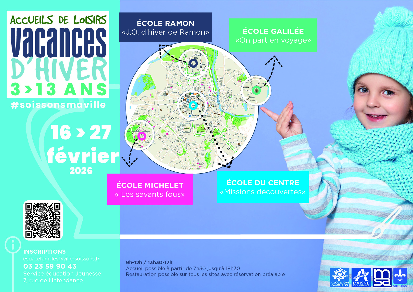 Les inscriptions aux Accueils de Loisirs des vacances d'Hiver 2026 pourront être effectuées en ligne depuis votre Espace Familles ou au Service Éducation - Jeunesse ; 7 rue de l’Intendance (jours ouvrés - de 8h30 à 12h00 et de 13h30 à 17h30 à partir du :
