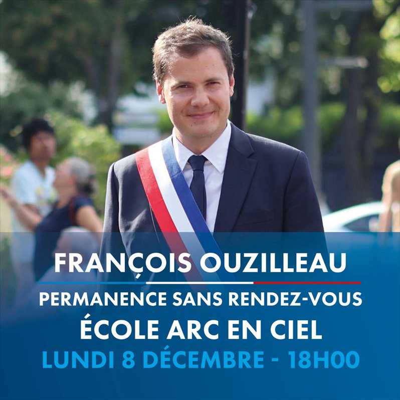 Prochaine permanence des élus sans rendez-vous le lundi 8 décembre à 18h, à l'Ecole maternelle Arc...