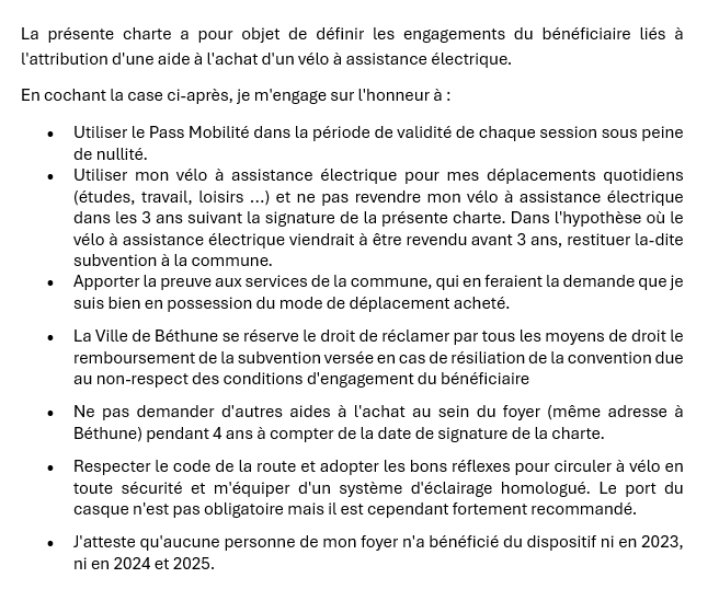 Charte d'engagement du bénéficiaire