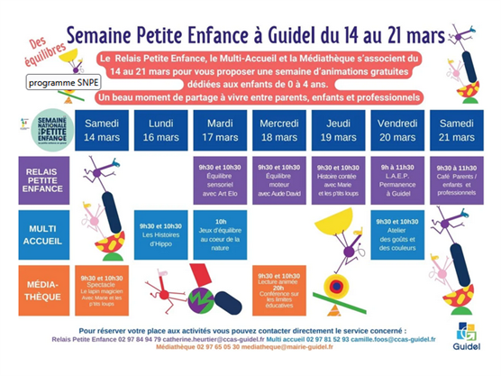 Du 14 au 21 mars à Guidel Cette année, le Relais Petite Enfance (RPE), le Multi-Accueil et la...
