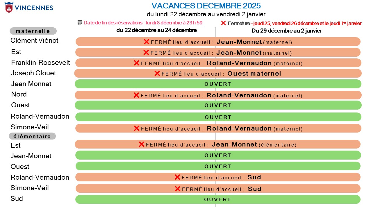 Ci-dessous les accueils de loisirs ouverts pour les vacances de noel 2025, les reservations sont ouvertes jusqu'au lundi 8 décembre 2025 inclus